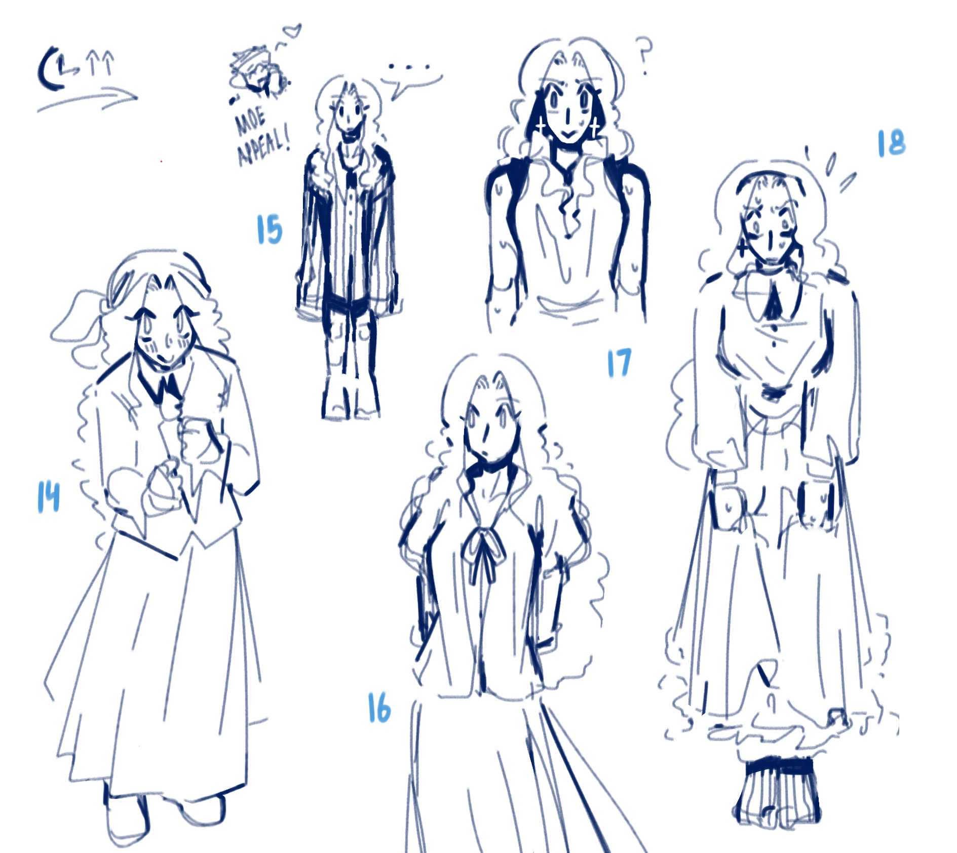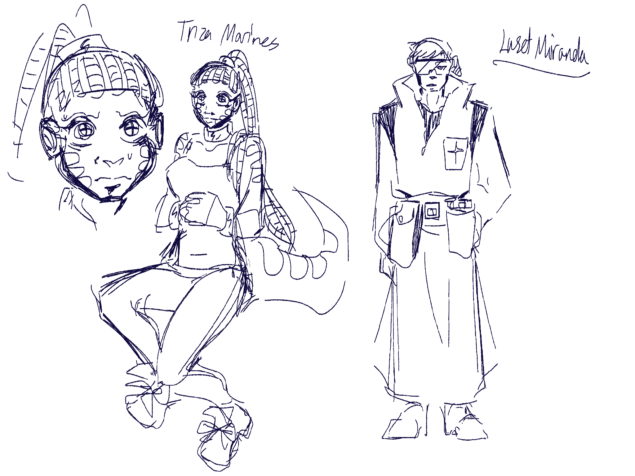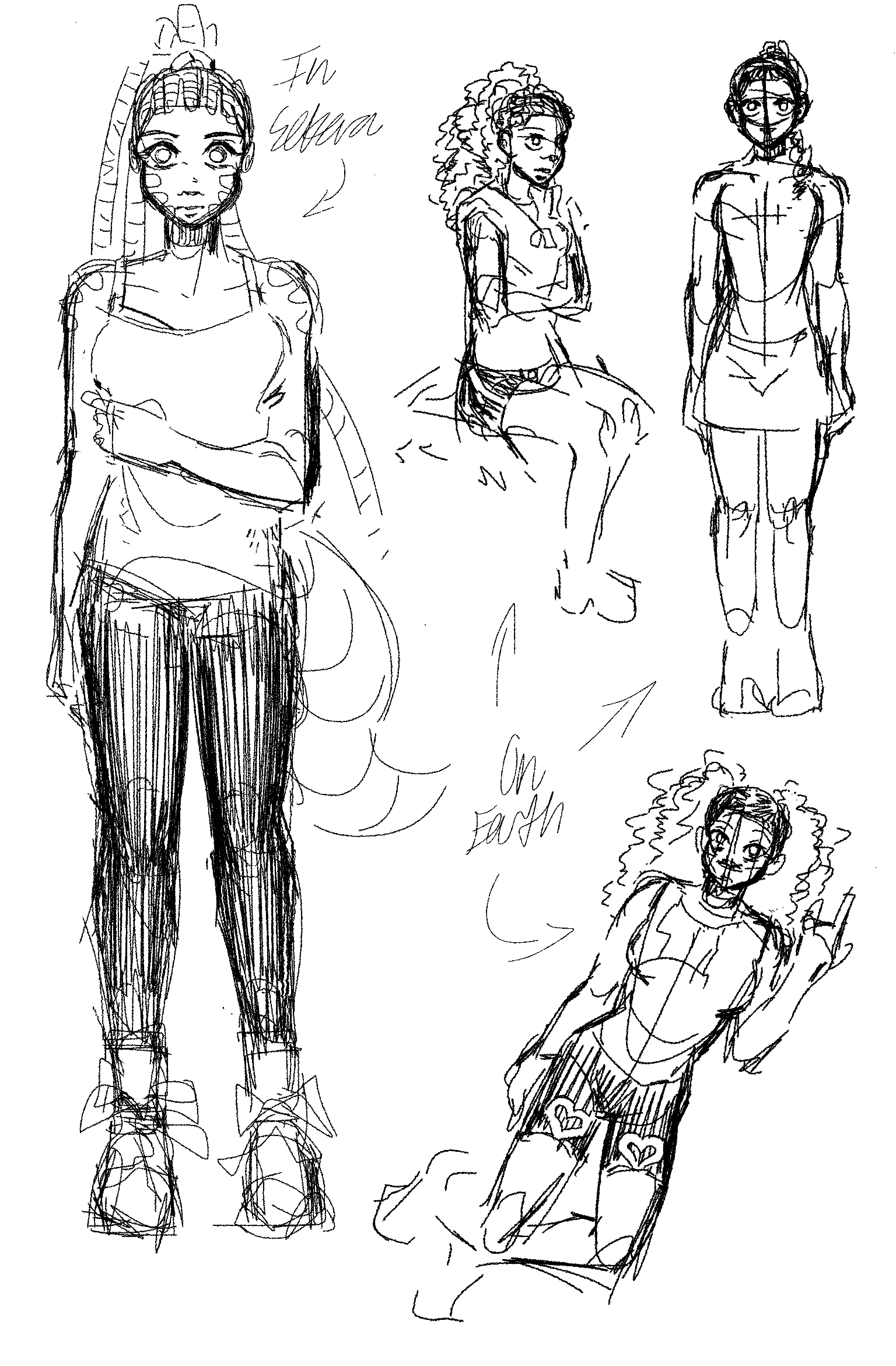 quick sketches cont.triza in various outfits, in sebara and on earth.my earliest sketches of mary. not totally up-to-date (they're 3 years old).