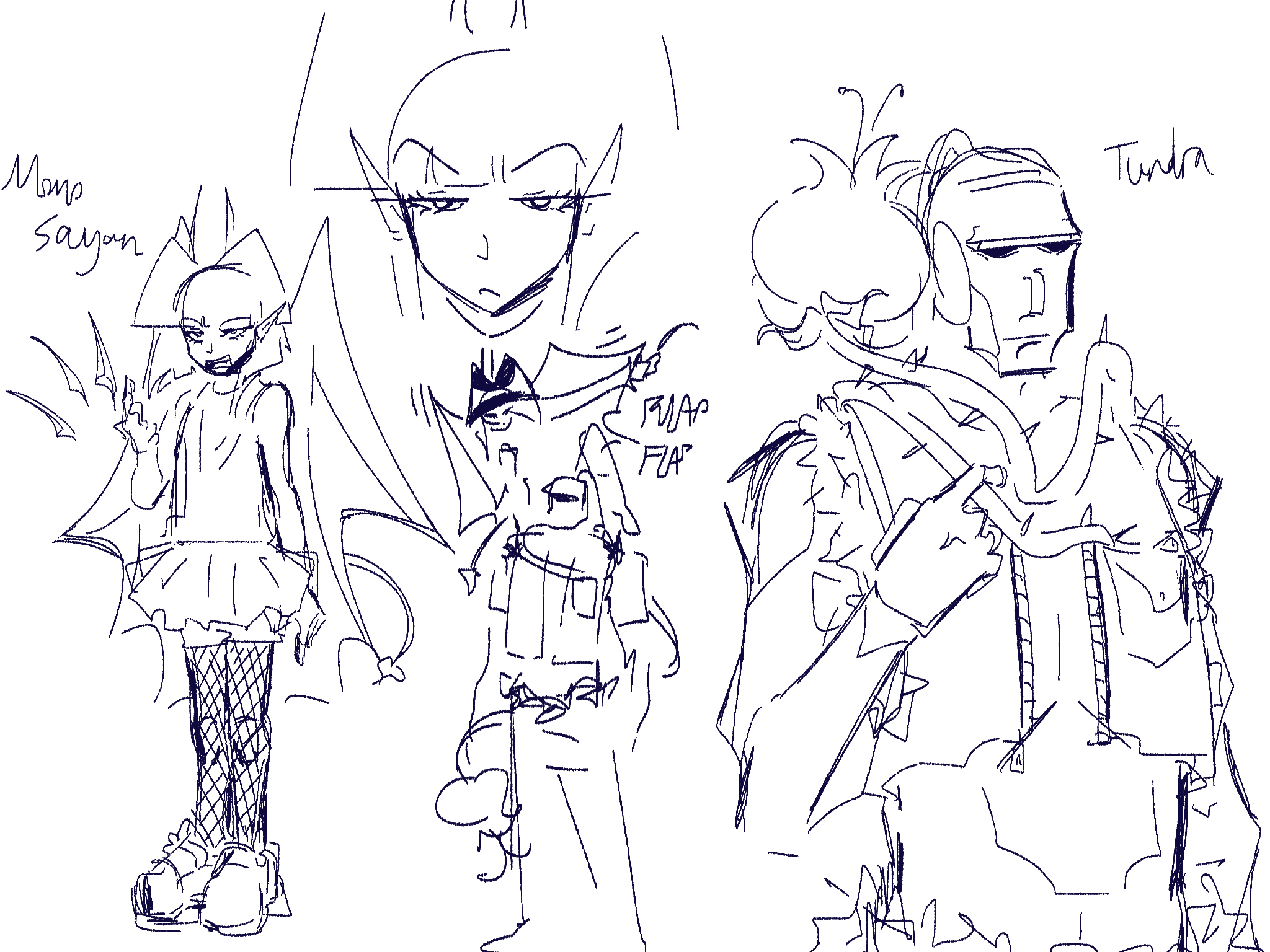 reyes, illya, tundra, mono, and triza, all together...quick sketches. their most recent/up-to-date designs.quick sketches cont.